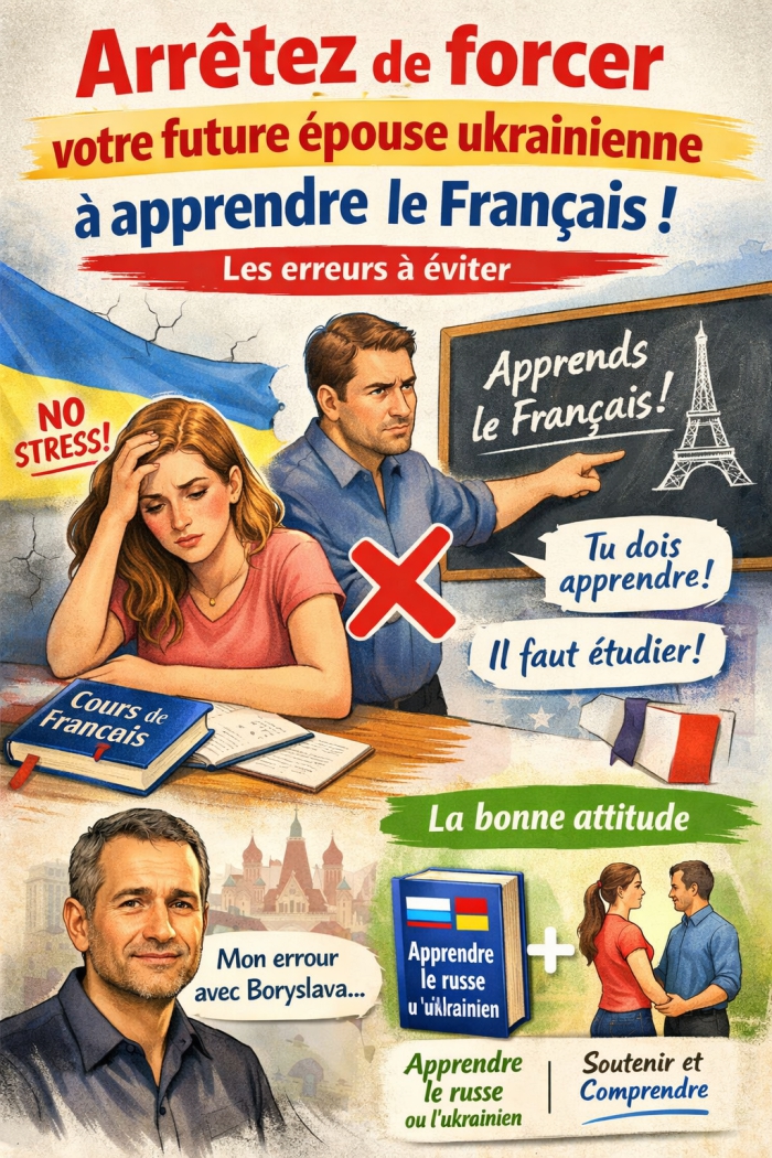 Messieurs, je dois vous parler franchement. Je sais exactement ce que vous êtes en train de faire. Vous venez de rencontrer une femme ukrainienne extraordinaire, votre cœur bat la chamade, et déjà… vous pensez à son intégration. Vous vous dites : « Elle doit apprendre le français, c'est logique, non ? »
