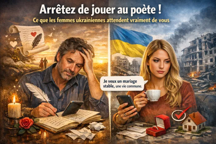 J'ai déjà écrit sur ce sujet dans mon article « Les femmes ukrainiennes ne sont pas romantiques » — et croyez-moi, le titre choque, mais c'est la réalité. Le romantisme à la française, les grandes déclarations, les textes fleuris... tout ça peut même créer de l'inquiétude chez une femme ukrainienne. Elle se dit : « Cet homme parle beaucoup, mais est-ce qu'il agit ? »