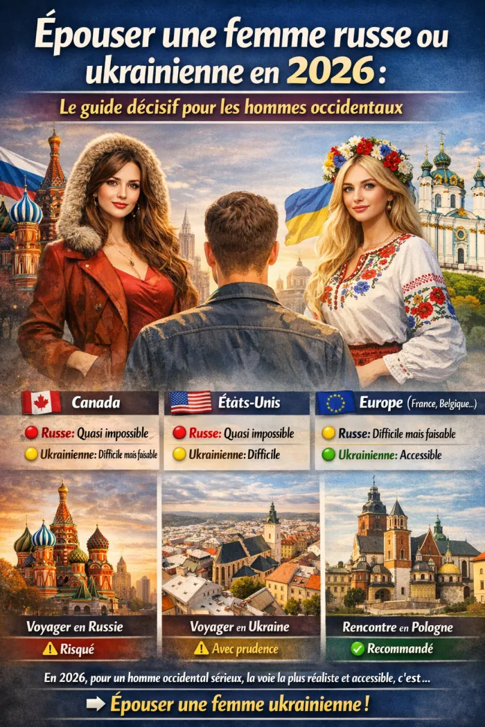 Car oui, en 2026, faire venir une femme russe et faire venir une femme ukrainienne, ce n'est absolument plus la même chose. Et si vous envisagez sérieusement de construire une vie de couple avec une femme de l'Europe de l'Est — pas une aventure d'un soir, pas un caprice exotique, mais un mariage pour la vie — alors vous devez comprendre la réalité administrative et géopolitique avant de vous lancer.