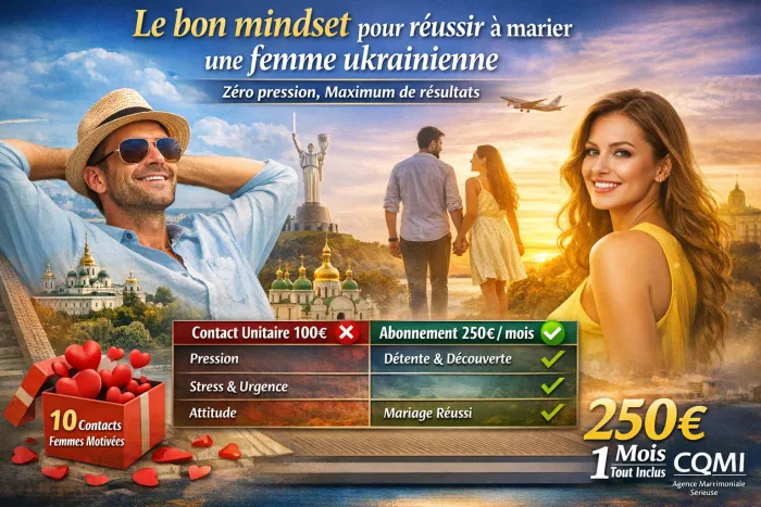 Le bon mindset pour réussir à marier une femme ukrainienne : zéro pression, maximum de résultats Le bon mindset pour réussir à marier une femme ukrainienne : zéro pression, maximum de résultats Agence CQMI