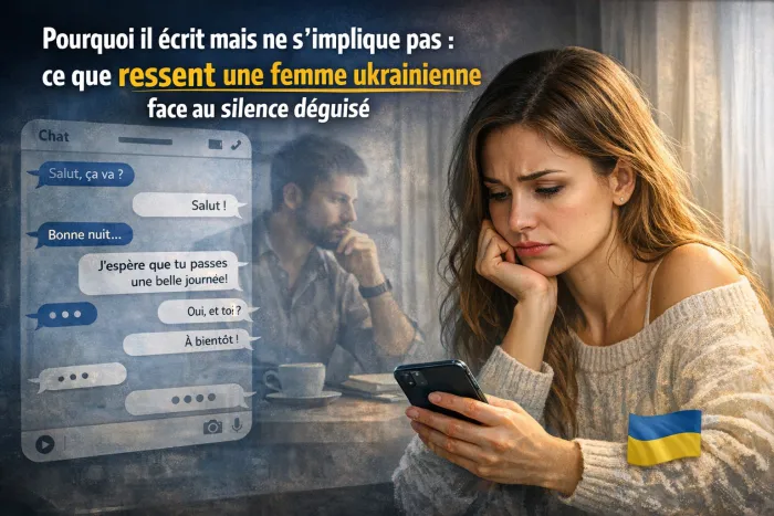Un homme qui écrit régulièrement à une femme ukrainienne sans jamais poser de vraies questions, sans proposer d'appel vidéo et sans évoquer de rencontre envoie un message ambigu — et pour une femme sérieuse qui cherche un mari, ce message est épuisant. Cet article explore ce phénomène du point de vue des femmes ukrainiennes : comment elles le perçoivent, ce qu'elles ressentent, et pourquoi elles finissent par disparaître sans explication.